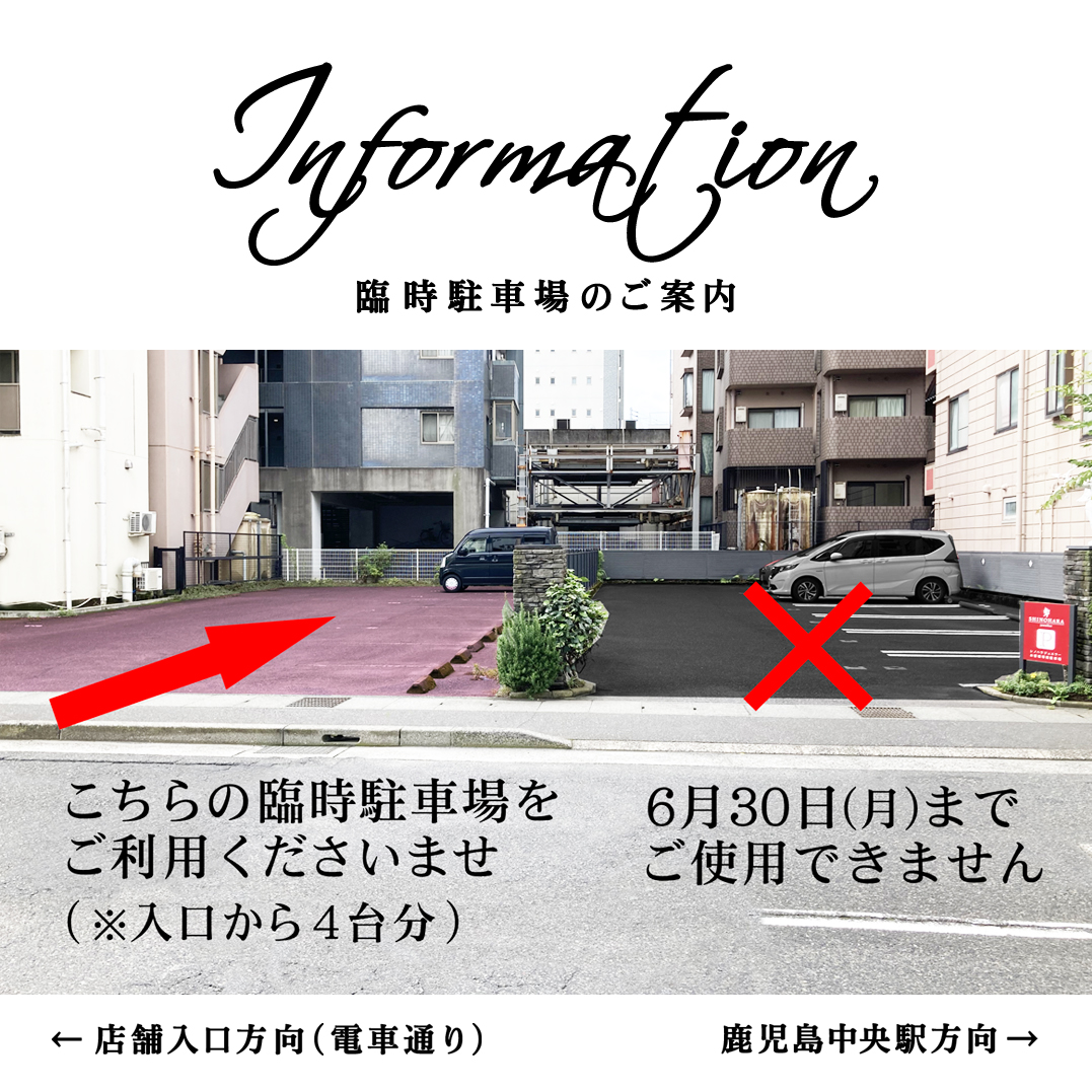 近隣のビル施設の解体工事のため、6月30日(月曜日)まで、専用駐車場が使用できなくなります。